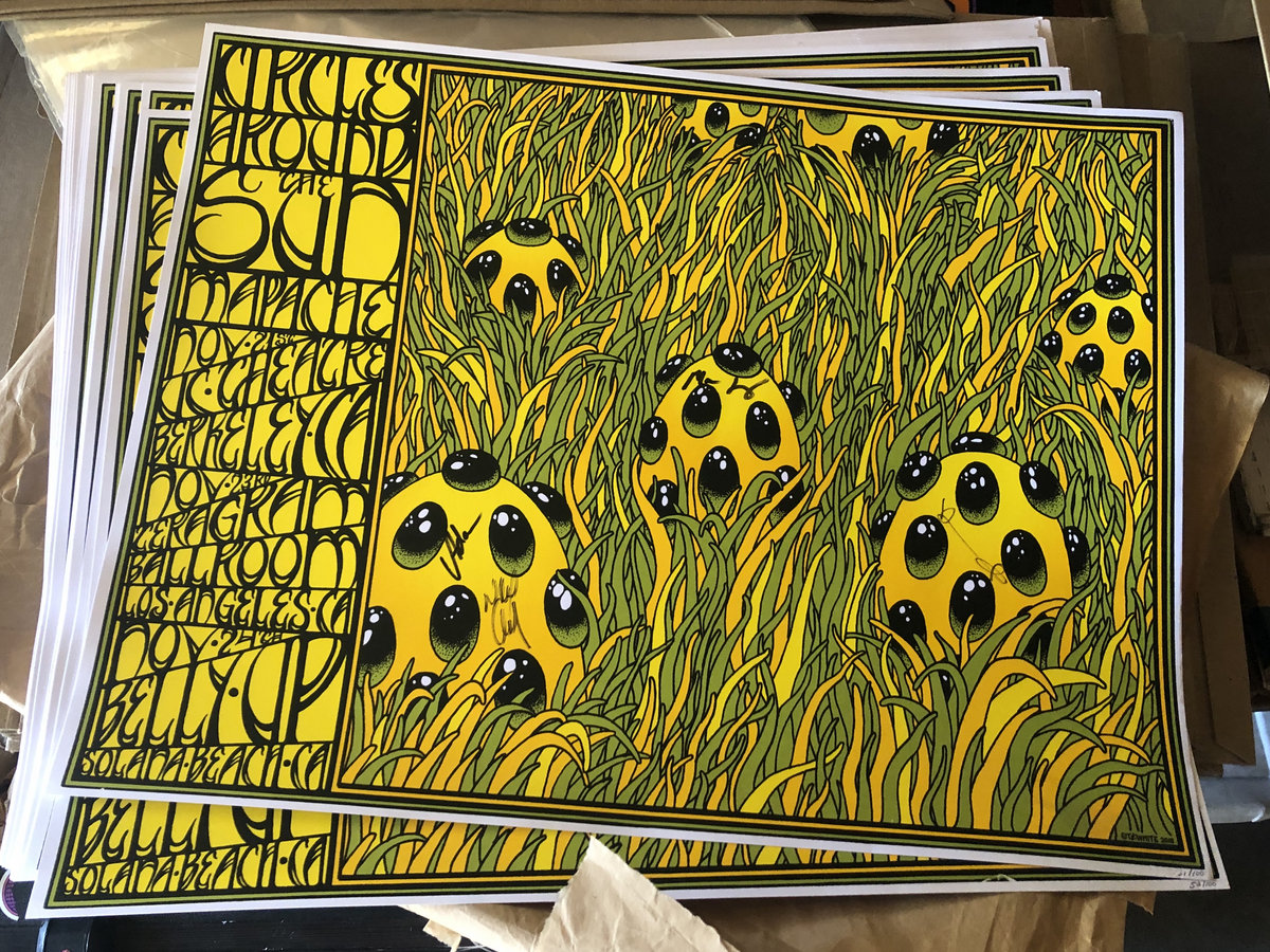 Another signed poster unearthed from the Cats Garage. Low and behold we found a stack of these posters SIGNED by the band. Art by Teddy Pancakes. Screen printed on heavy paper 18"x24". All signatures are slightly different and 100% authentic.